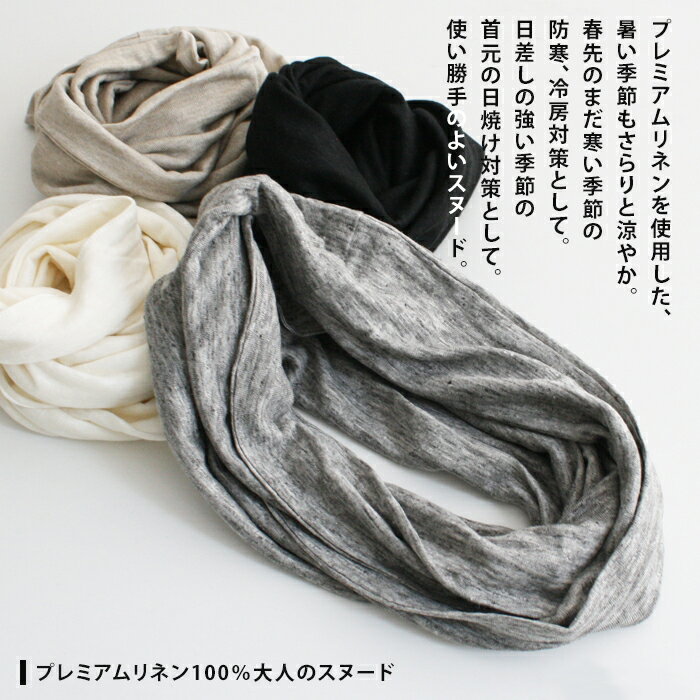 [スヌード リネン] プレミアム リネン 100% スヌード / 日本製 メール便可 40代 50代 60代 30代女性 ファッション 麻100 ストール 巻物 ナチュラル 日除け 冷房対策 接触涼感